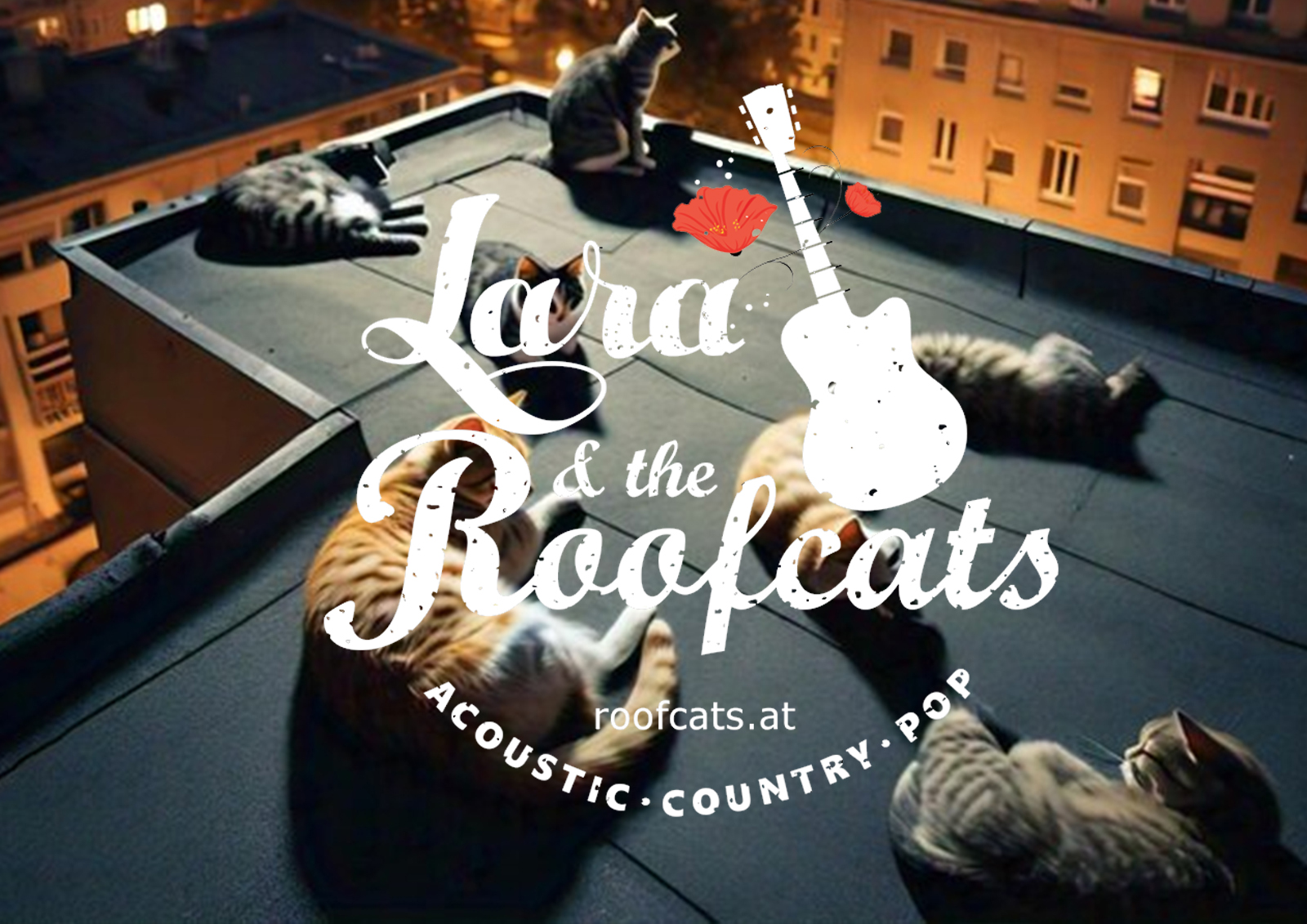 Wir sind Lara & the Roofcats – Lara und ihre musikverrückten Bühnenkatzen mit unstillbarer Lust auf Live-Musik und einer gehörigen Portion Groove. Mit eingängigen Melodien, tanzbaren Beats und einer explosiven Mischung aus Country, Pop & Rock bringen wir jedes Publikum zum Schnurren. Unsere Songs gehen direkt in die Beine und sorgen ganz nebenbei verlässlich für gute Stimmung.