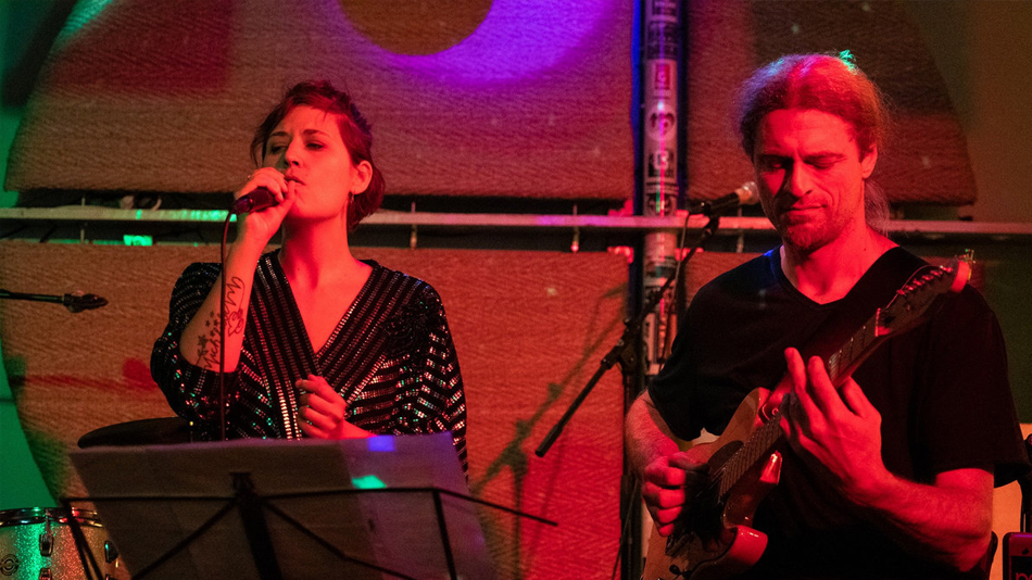 Lisbeth von der Rolle singt, Mark B. Playing begleitet an der Gitarre. Gemeinsam erspielen sie sich immer wieder von neuem Songs, die schon lange Weggefährten sind, die sie berühren, die sie in ihren eigenen Versionen weitertragen.